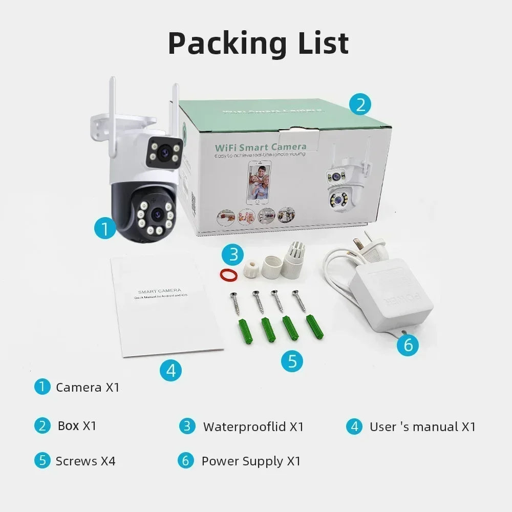 8MP Outdoor Wifi PTZ Camera Dual Lens Dual Screen AI Auto Tracking IP Video Surveillance Camera CCTV Two Way Audio